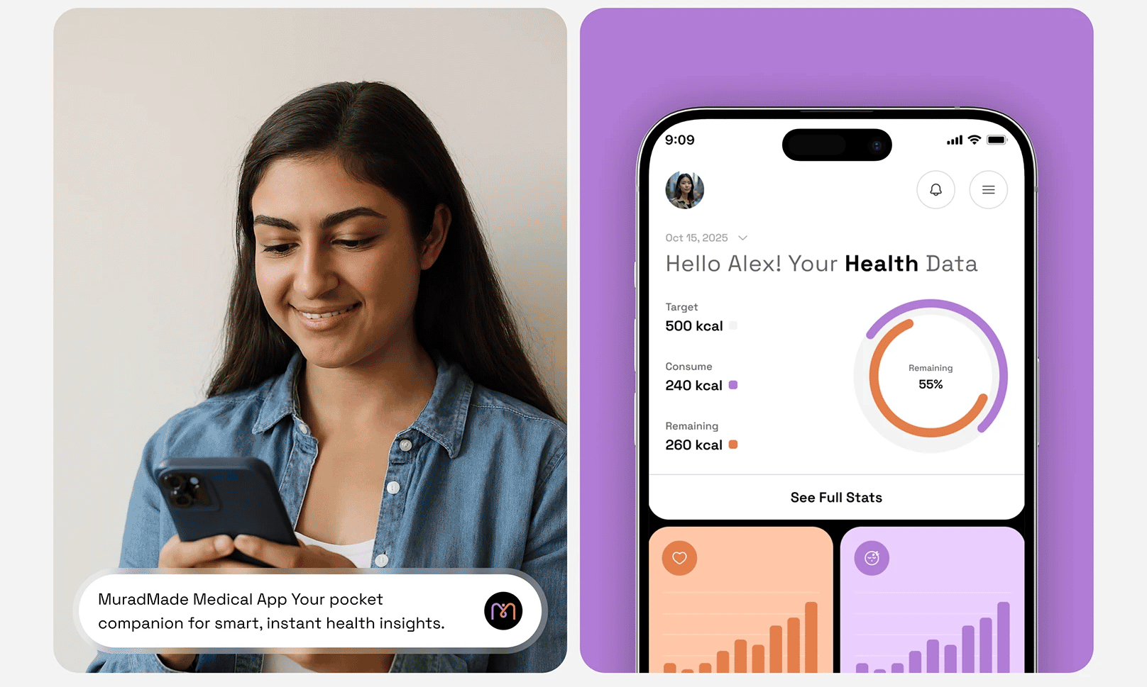 MuradMade Medical App est une application mobile de santé moderne conçue pour aider les utilisateurs à garder le contrôle de leur bien-être au quotidien grâce à une expérience digitale claire et intuitive.